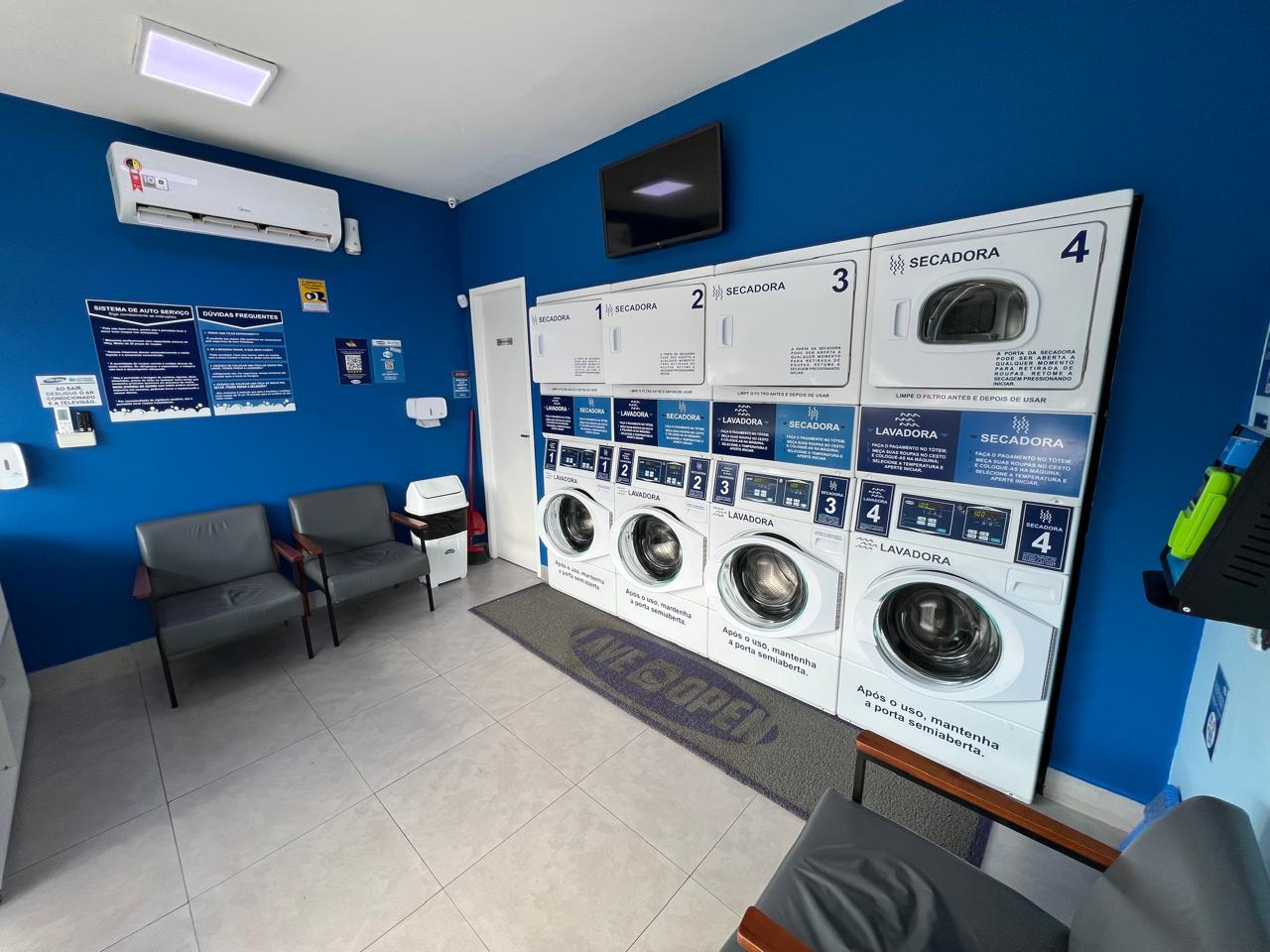 Cada unidade da Lave Open foi planejada para oferecer uma experiência prática, confortável e moderna. O ambiente é climatizado, com ar-condicionado e bancos que garantem mais comodidade enquanto o cliente aguarda o ciclo de lavagem. Todas as lojas contam com Wi-Fi liberado e televisão, criando um espaço agradável, seguro e conectado. Nosso objetivo é que cada visita seja rápida, leve e totalmente conveniente — do jeito que a vida moderna pede.
